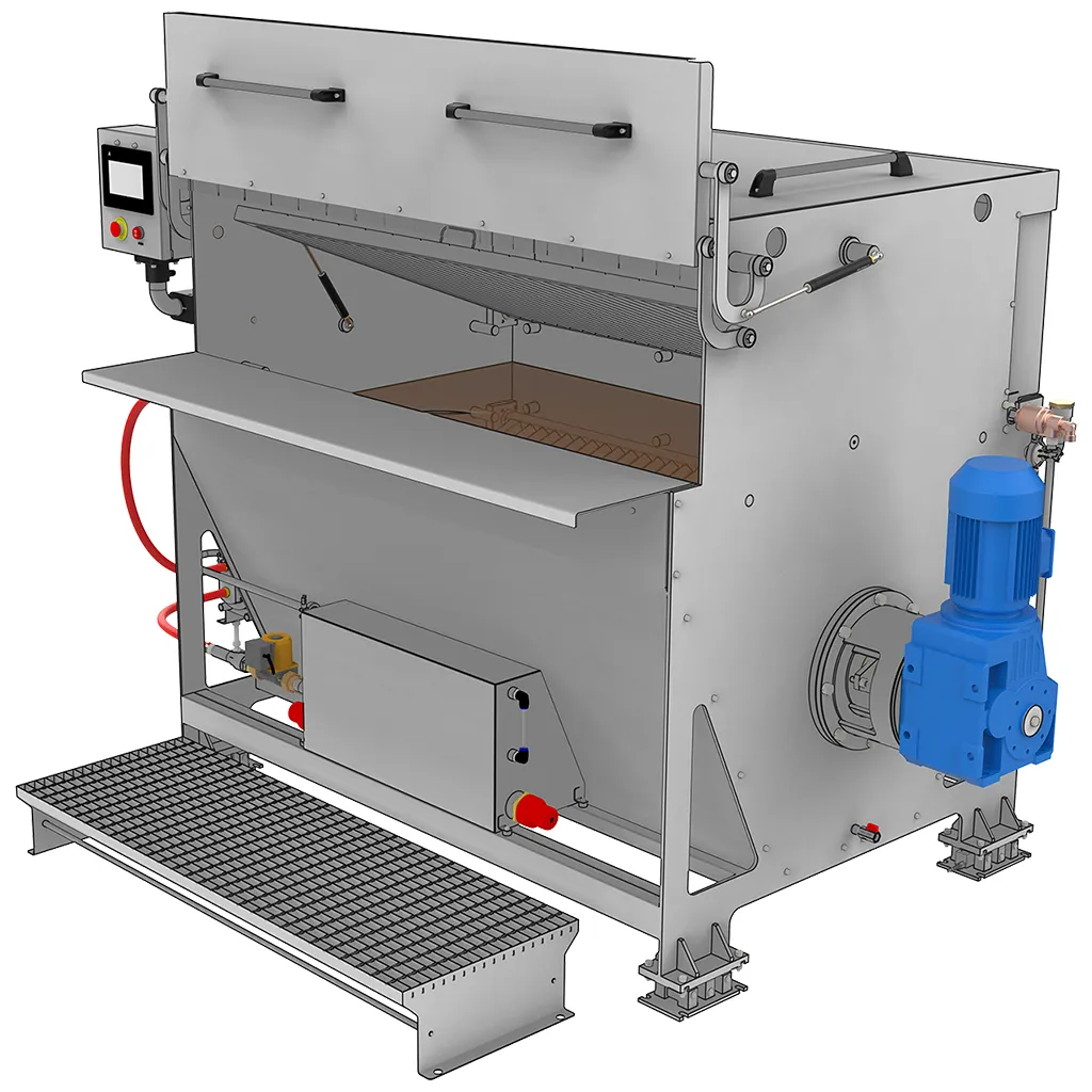 Our chocolate melters are manufactured entirely from AISI 304 grade stainless steel, ensuring durability, hygiene, and compliance with food industry standards. The bottom and side sheets of the tank are designed with increased thickness to withstand continuous operation and heavy loads of chocolate mass. A generously sized water jacket surrounds the tank, maintaining consistent temperature and preventing heat loss during the melting of chocolate buttons or blocks. The CMT1000 model is equipped with bottom and side wall scrapers that ensure uniform mixing and prevent product build-up, while a stainless steel lobe pump combined with a 1500-micron sieve filter guarantees smooth, particle-free chocolate circulation. Heating is provided by autoclave-type heaters, which offer reliable thermal performance and allow replacement without draining the water from the jacket, minimizing downtime and ensuring uninterrupted production.