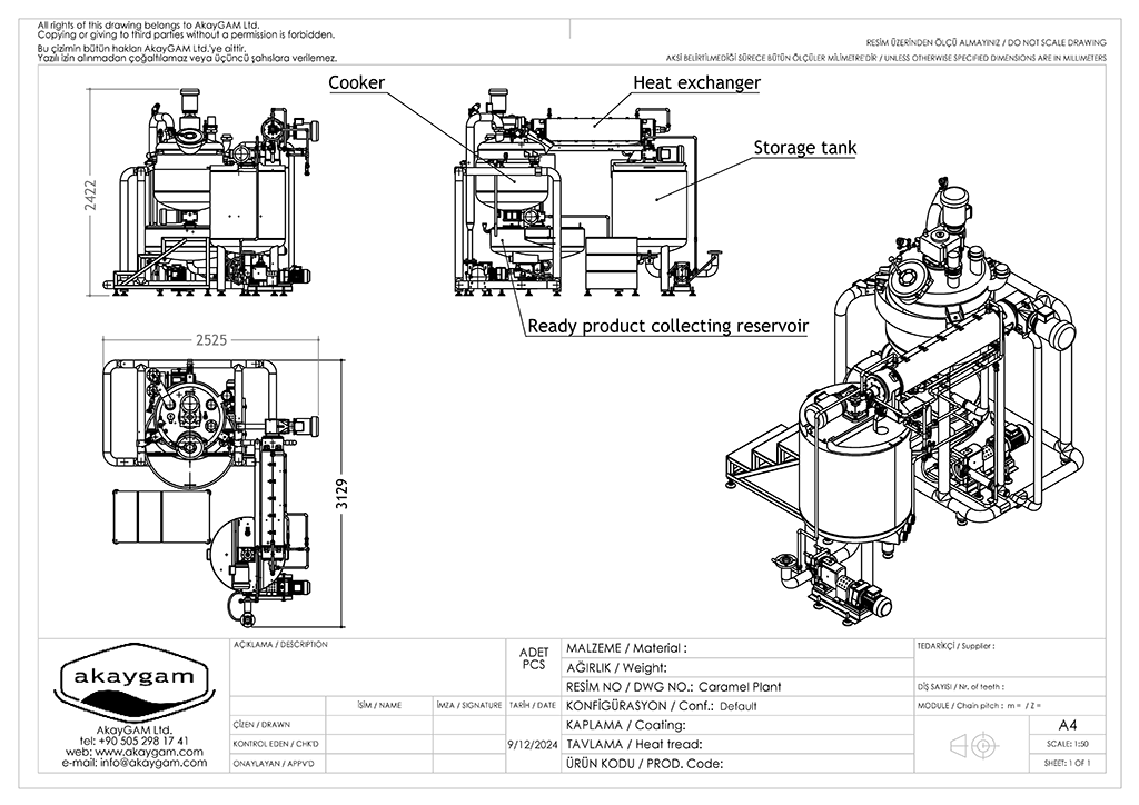 Fabricamos cocinadores y una planta de cocción de caramelo con una capacidad de 160 kg por lote.