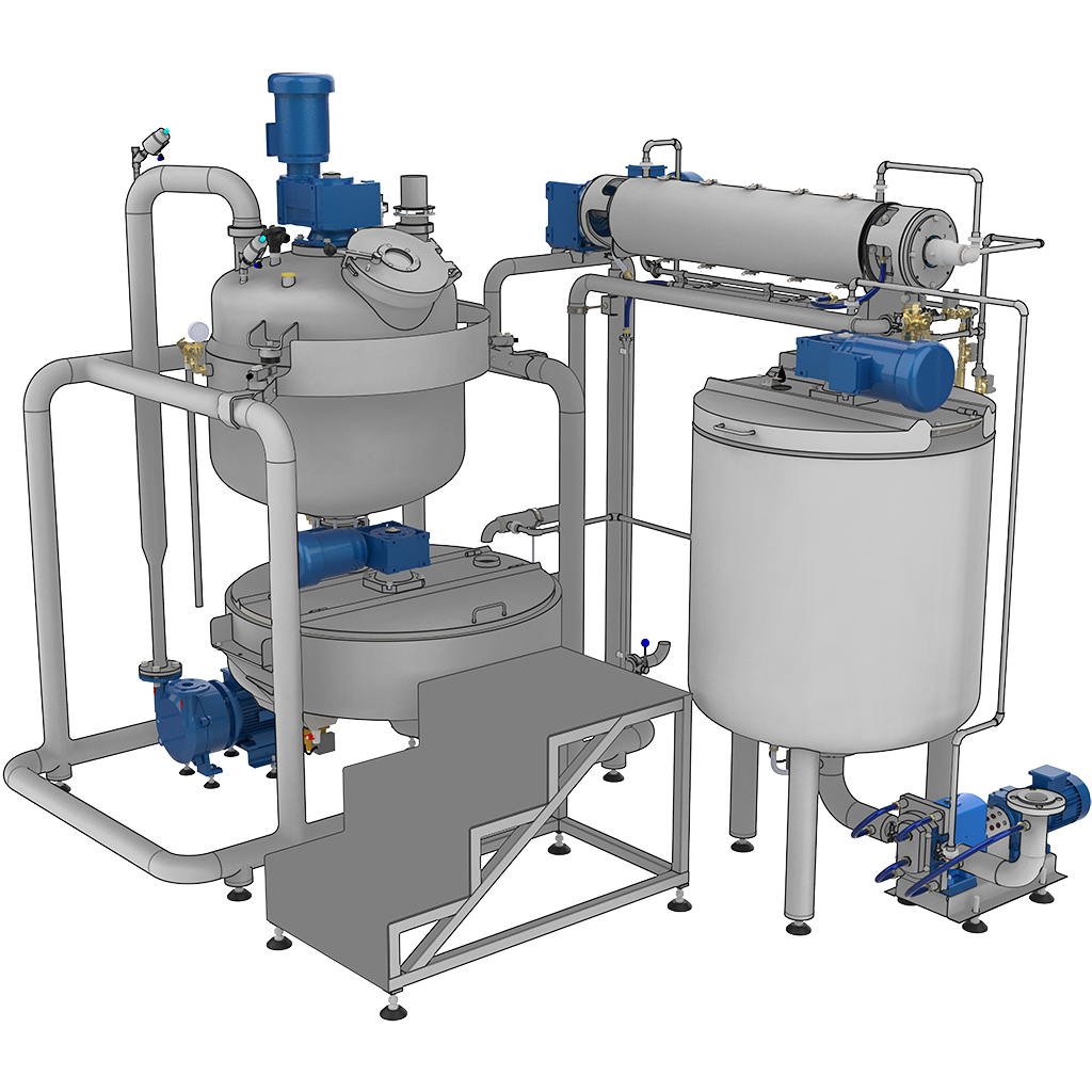 Planta de cocción por lotes para caramelos y toffee. Cocinador de vapor con bomba de vacío, depósito de descarga, intercambiador de calor y tanque de almacenamiento.
