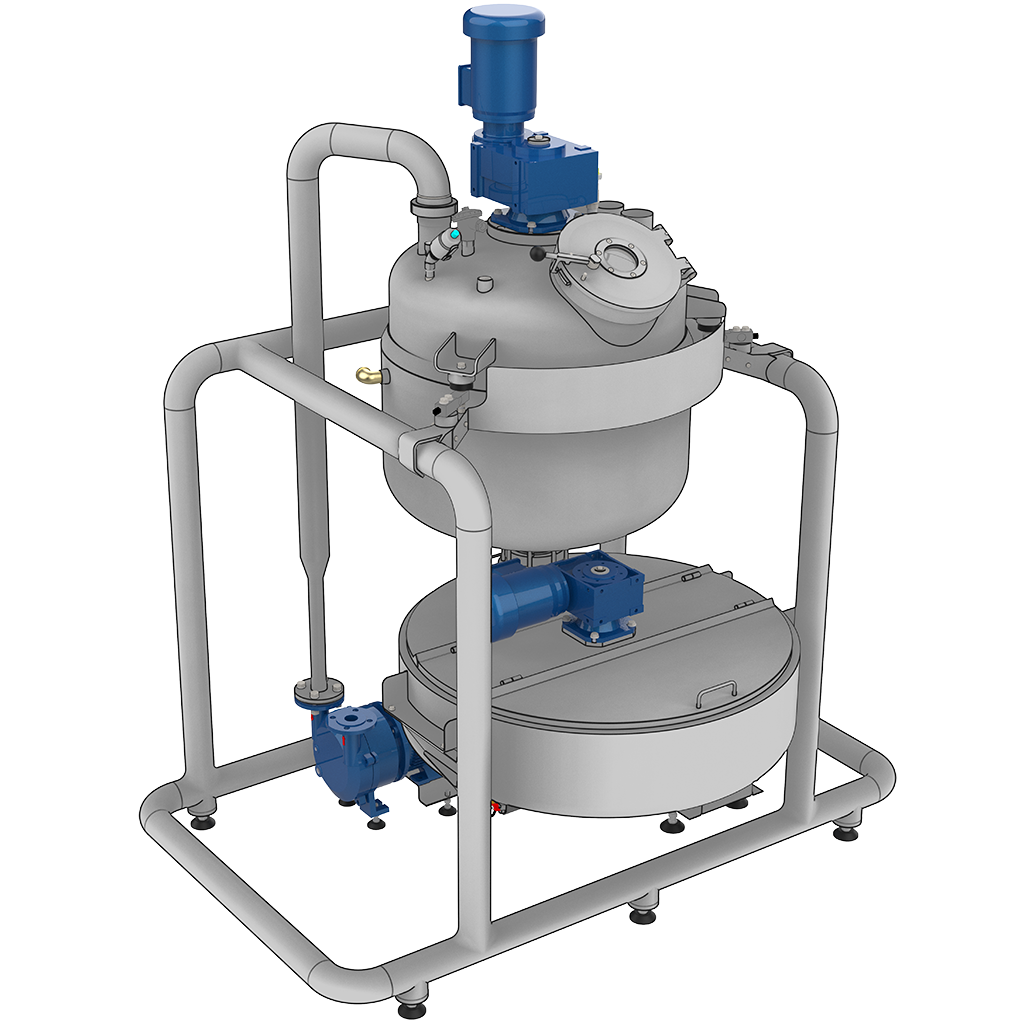 El componente principal de la planta de fabricación de caramelos o toffee es el cocinador. El depósito es hemisférico. La velocidad de agitación del cocinador es ajustable y los brazos mezcladores tienen raspadores de teflón. La planta de cocción de caramelos o toffee está equipada con HMI y PLC. Otros componentes de la planta incluyen depósito de descarga con chaqueta de agua y agitación, intercambiador de calor con rotor en hélice, bomba de vacío y tanque de almacenamiento.