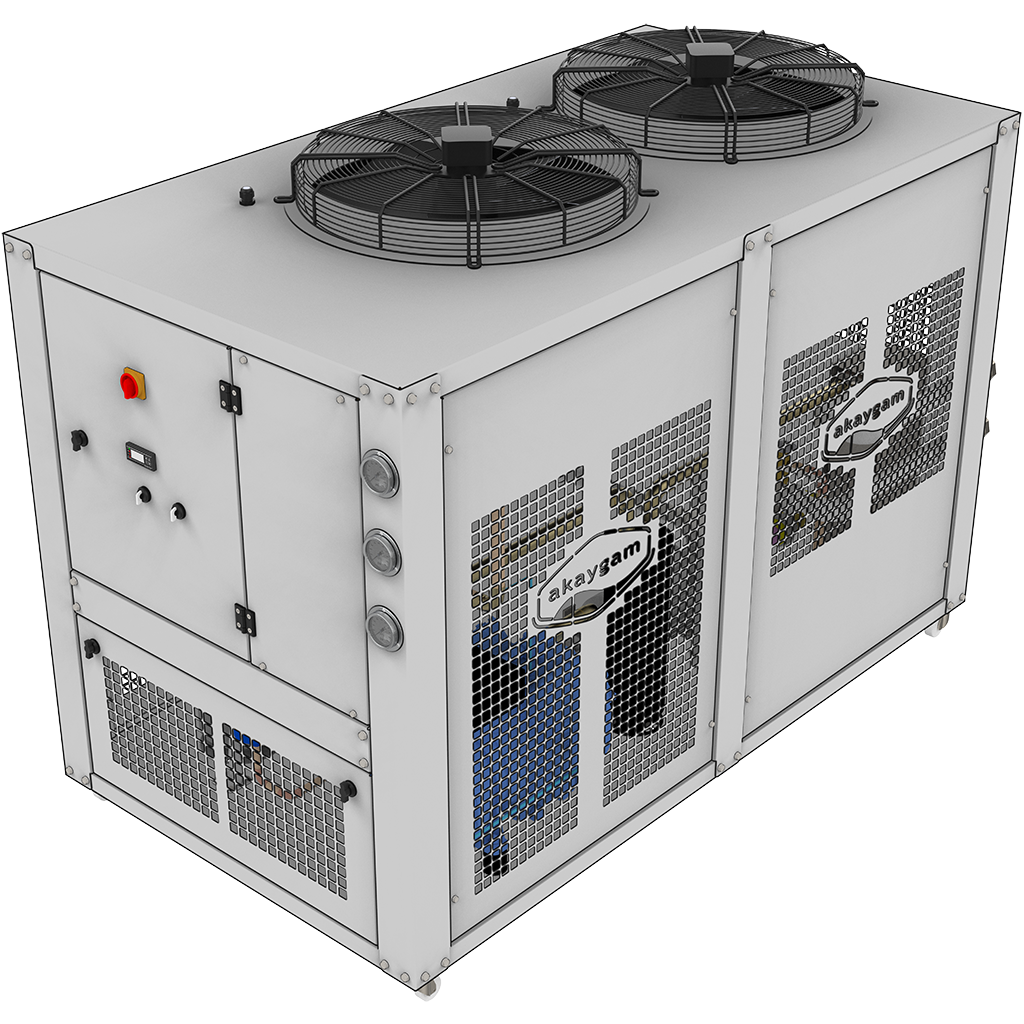El enfriador suministra agua fría al intercambiador de calor, que se utiliza para enfriar el caramelo recién cocido mientras se transfiere al tanque de almacenamiento. Se requiere un intercambiador de calor para poder usar el caramelo inmediatamente en la línea de formado o llenado; de lo contrario, el caramelo se enfriará de manera natural en el tanque de reposo.