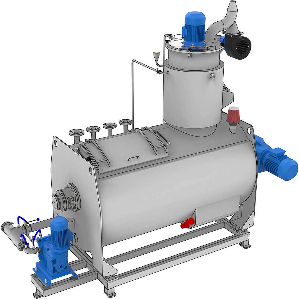 La serie horizontal HMC utiliza agitación horizontal intensiva combinada con salpicado controlado y extracción de aire. Esta configuración aumenta el área superficial expuesta y acelera la eliminación de compuestos volátiles mientras mantiene un acondicionamiento térmico uniforme. El diseño horizontal está optimizado para mayores capacidades por lote y entornos de producción industrial estables.