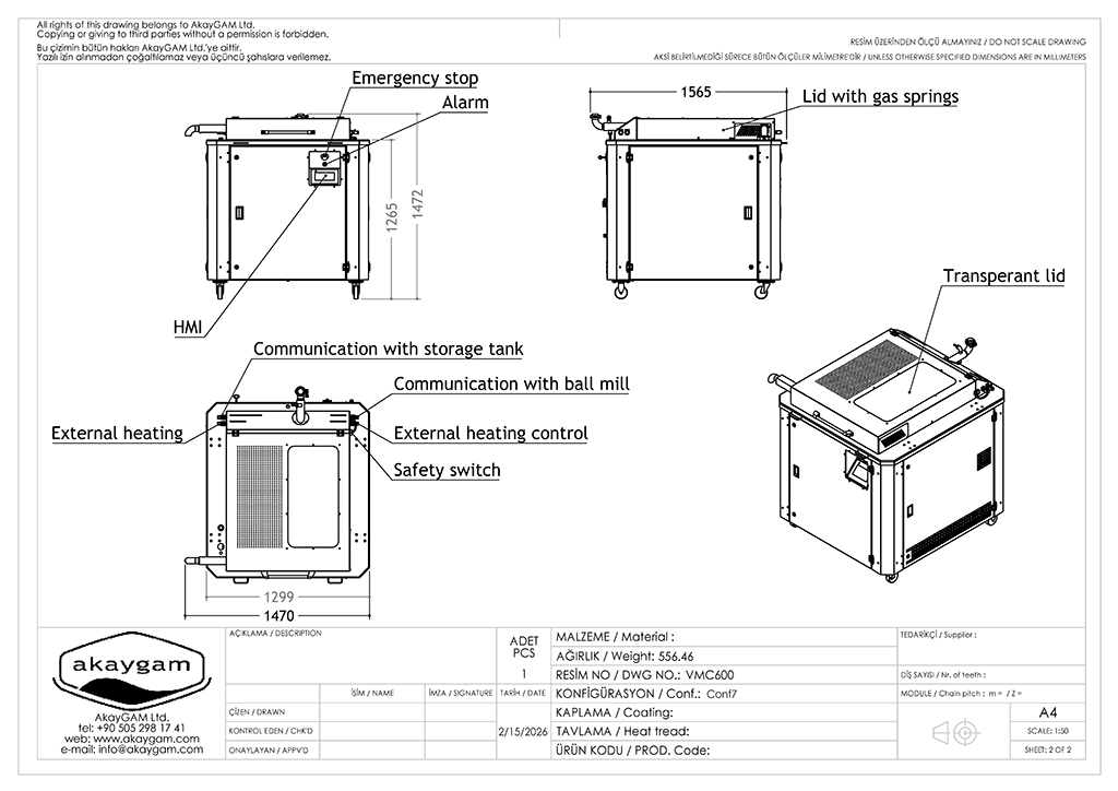 La serie VMC utiliza un recipiente cilíndrico vertical con agitación orbital que eleva y redistribuye continuamente la masa de chocolate. Este movimiento de mezcla aumenta la exposición del chocolate al flujo de aire, mejora la eficiencia de desgasificación y garantiza una distribución uniforme de la temperatura en todo el lote. Los conches líquidos verticales son adecuados para entornos de producción flexibles donde se procesan múltiples recetas y tamaños de lote más pequeños.